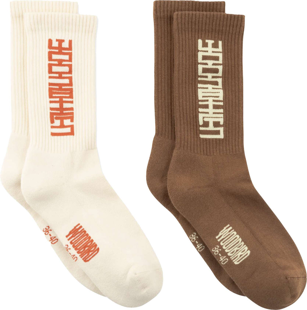 Calzini dalla vestibilità regolare, lunghezza classica, con parte superiore a costine e plantare liscio. Dettaglio grafico verticale lungo il gambale e stampa aggiuntiva sotto il piede. Struttura pulita con forma semplice. Coprono le caviglie. Questo è l'accordo.