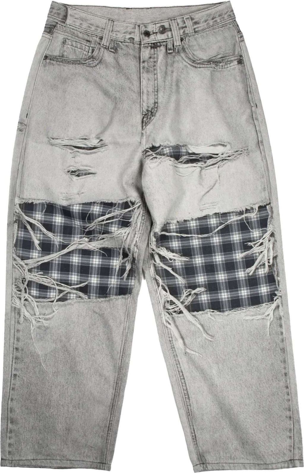 I nostri jeans Jean Grant Trompe L'oeil sono un modello in denim dal taglio ultra baggy, con una stampa digitale integrale effetto trompe l'oeil che riproduce un effetto strappato.