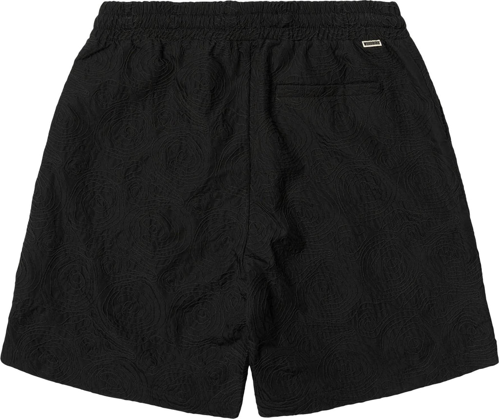 Pantaloncini dal taglio casual con una linea morbida e una cintura elasticizzata che li rende comodi da indossare. Il tessuto presenta un motivo a spirale in rilievo su tutta la superficie che conferisce una delicata profondità al tessuto. Struttura morbida, linea semplice e un look disinvolto.