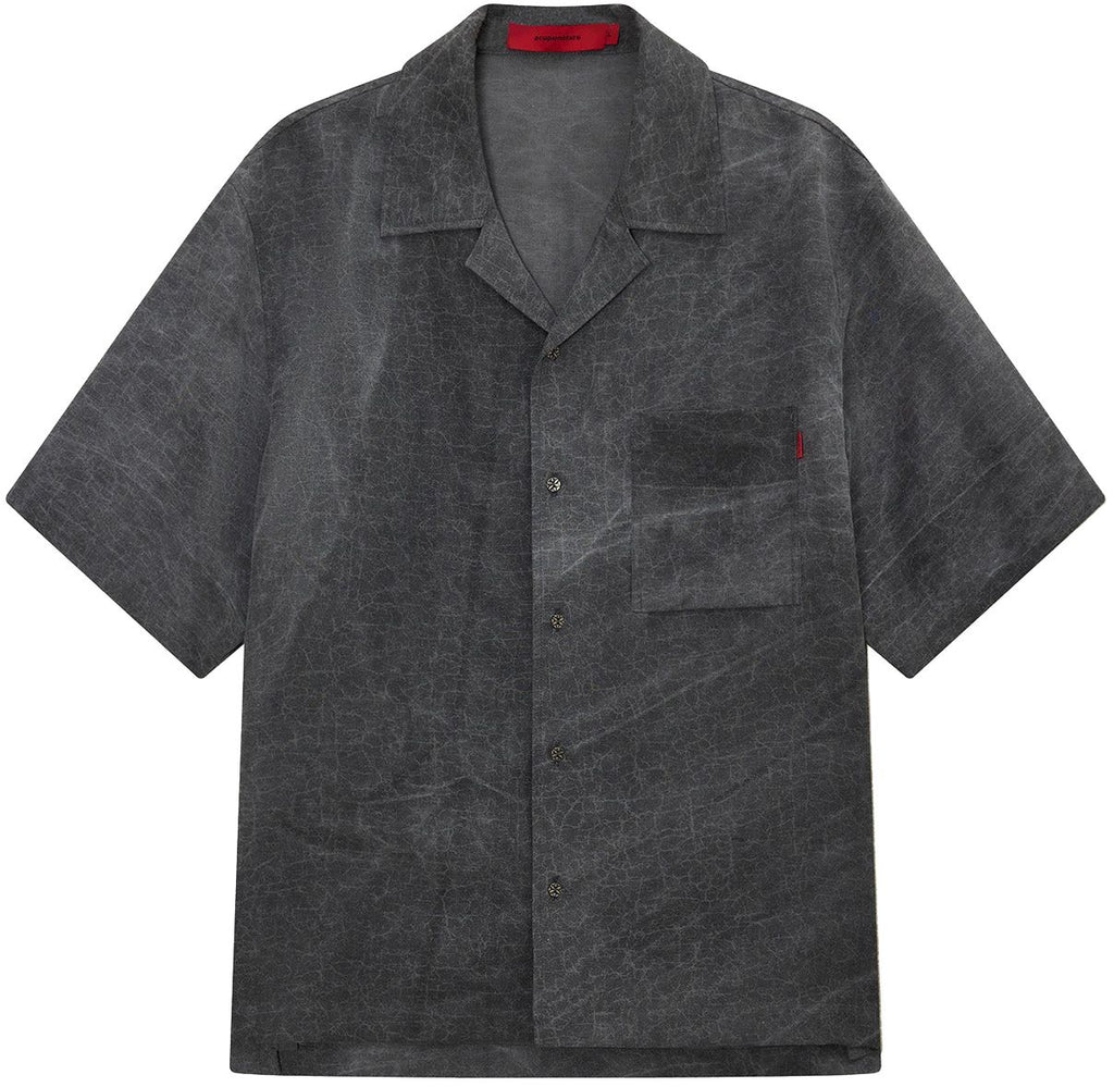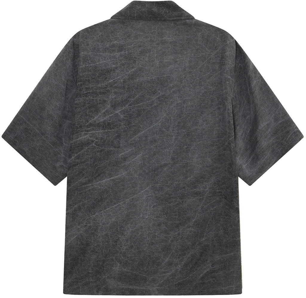 Camicia grigio marmo in tessuto misto di alta qualità con texture screziata e sfumature delicate, dal taglio morbido.