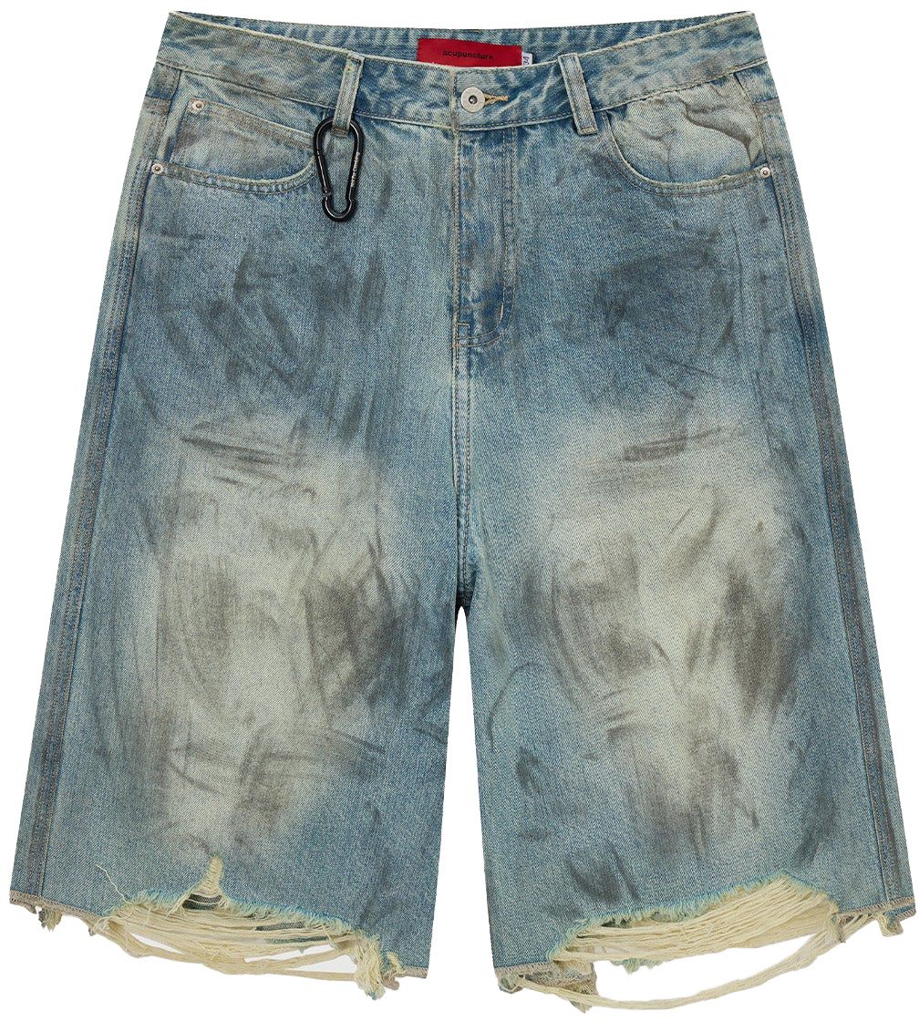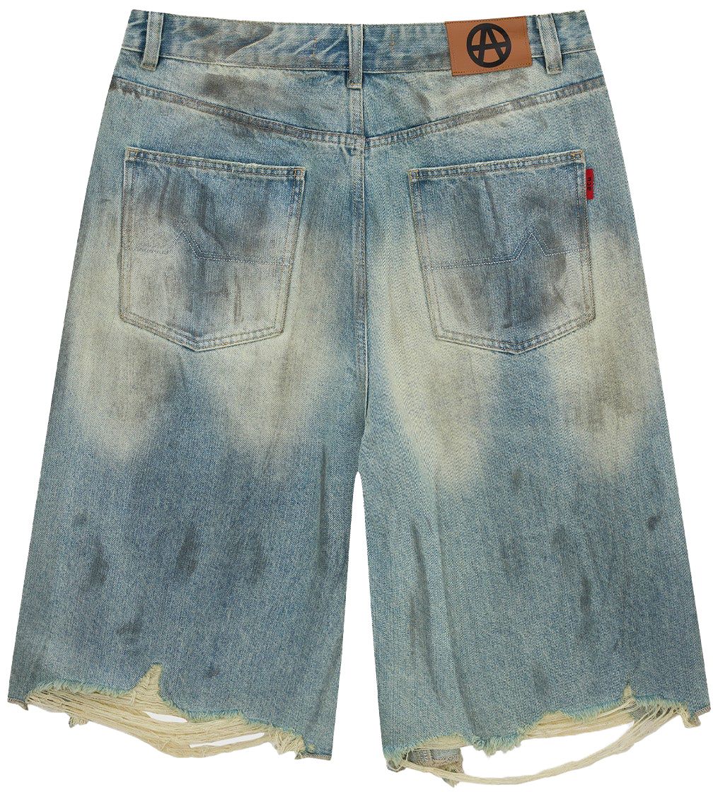 Rise Wash, effetto consumato e audace senza sforzo, con denim scolorito e strappato e vestibilità comoda.